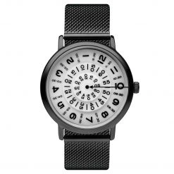 Pourquoi ne pas le réveiller avec cette montre noir et blanc de Seizmont. L’heure (chaque cadran) tourne autour d’une flèche noire fixe… pour vous rappeler qu’elle est constamment en mouvement et vous invite à profiter de chaque instant qui passe.